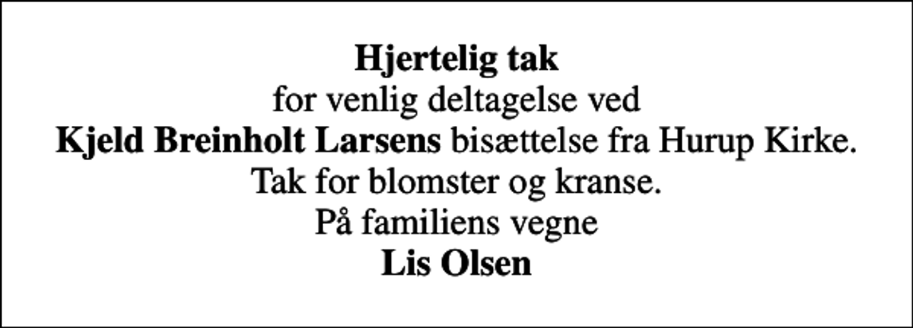 Bisættelsen finder sted fra Hurup Kirke tirsdag den 4. januar kl. 13.00